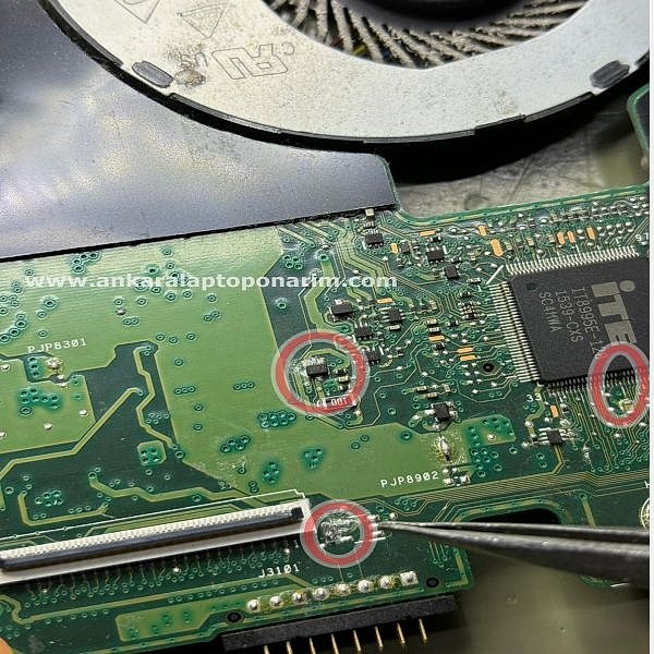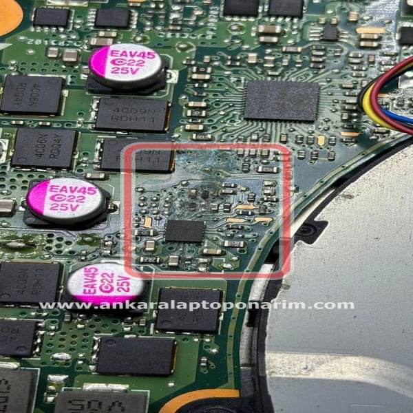 Anakartın üzerindeki arızalı kompanetler chipler entegreler mosfetler ölçülerek kompanetlerin değer kaybına uğrayıp uğramadığı saptanır. Ankara notebook servisi, Ankara notebook tamiri, Ankara laptop tamiri.